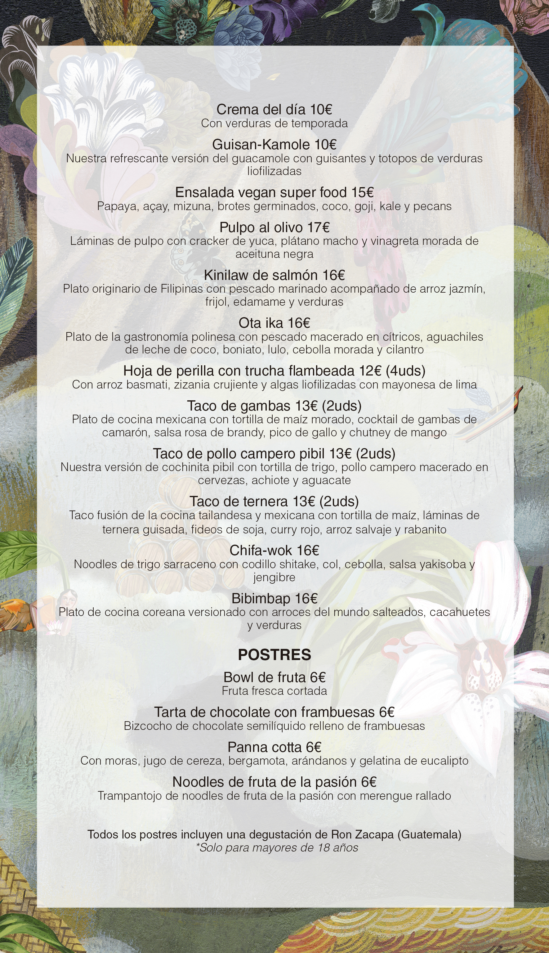 En este maravilloso espacio podrás degustar una variada selección de platos fusión de todo el mundo: